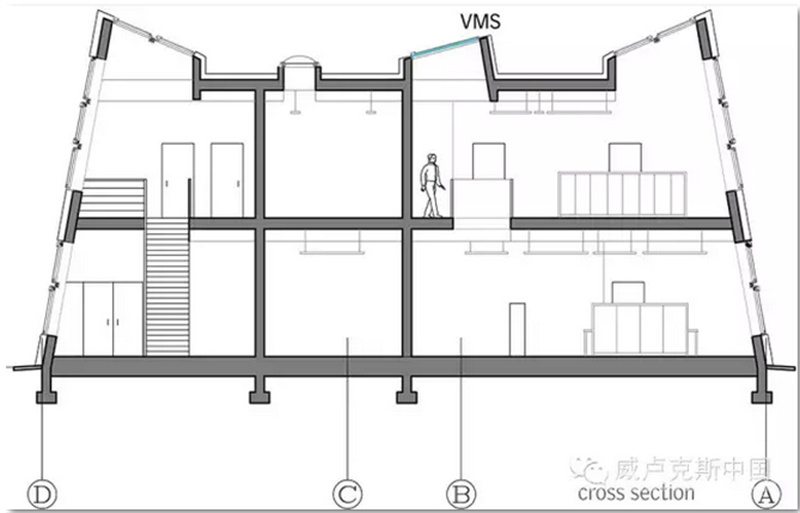 建筑立面和地下空间,由296樘威卢克斯窗组成的多条采光带,建筑中庭位置采用VMS商用天窗系统,加速室内自然的通风换气。
