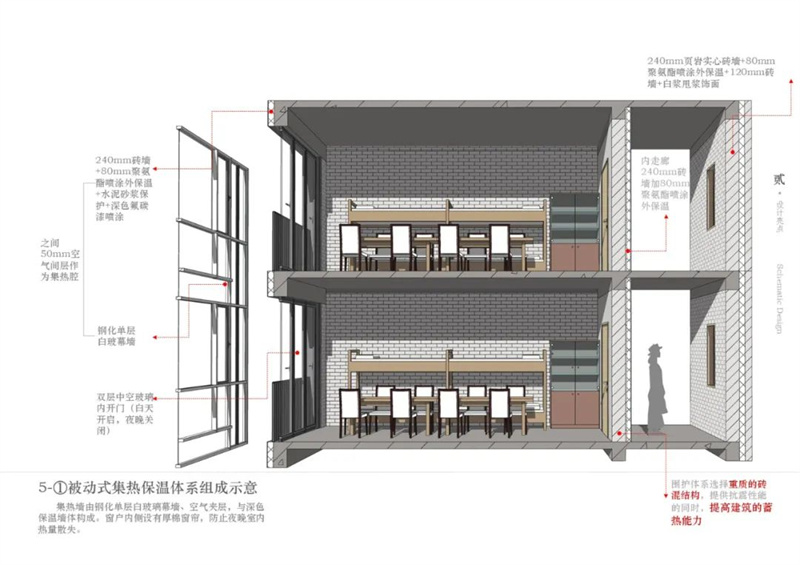 ACTIVENESS 针对造价低廉、气候严酷、资源匮乏和三江源头的高环保要求等限制,以低造价,低能耗,易维护的设计策略开发了成套的被动式太阳能技术,实现了建筑采暖的零碳排放。 采用独创的南侧集热墙体系,经使用后实测,最冷月份主要房间室内外平均温差达23℃以上。项目在高原上用成套的解决方案对未来同类型的建筑设计提供了参考和示范。 开创性的南侧集热系统设计 若尔盖地区冬季拥有良好的太阳辐射,而夏季不需降温措施,属于利用太阳能的适宜区。因此我们首先将建筑规划为南北朝向,集热方式采用直接受益式、集热蓄热墙式结合,并实现热工性能昼夜可变。 建筑外围护结构采用重质墙体,80mm厚喷涂聚氨酯保温层,阻挡热量的散失。南向最大限度开窗,集热墙部分由窗、空气夹层和墙体三部分组成,利用阳光照射到外面有玻璃罩的深色蓄热墙体上,加热透明玻璃和厚墙外表面之间的夹层空气,通过热压作用使空气流入室内,向室内供热,同时墙体本身直接通过热传导向室内放热并储存部分能量,夜间墙体储存的能量释放到室内。 项目造价仅为每平方米2345元,考虑到多数材料需从平原地区运送至当地,经核算,此造价仅相当于平原地区约每平米1300元的建设成本。用地四周地势较为平坦,日照条件良好。 1.基于资源综合利用的采暖方式选择 由于项目面临多种限制条件和严苛的气候环境,相较于其他能源系统,被动式太阳能采暖系统具有投资低,维护简单,性价比高等优点。 对项目基地上的可再生能源进行分析,可以发现当地冬季太阳能资源非常丰富,可以满足建筑采暖的基本能源诉求。 2.前置BIM技术综合数值模拟技术应用——A/辅助总图与平面布局优化 在设计的全过程中,BIM模型与性能化数值模拟同步进行,交替优化。以明确的策略,理性的决策,实现了采暖功能的零碳排放。 综合各组模拟数据,可以得出结论,在高海拔高寒地区,在满足建筑基本使用功能情况下,有效的设置温度缓冲区可以明显的改善建筑室内的热舒适度。 理性的选择建筑主要出入口位置,并合理设计各个出入口在冬季的管理模式,从而尽量减少冬季冷风涌入室内,维持室内热环境的稳定。 4.前置BIM技术综合数值模拟技术应用——C/支持窗墙比优化 对建筑的南北两个立面采用差异的立面策略,北侧洞口尽量缩小,减少热量散失可能,南侧则尽可能加大采光面,增加室内的得热,同时创造性地提出了南窗热工性能昼夜可变设计,很好地解决了得热和保温的矛盾。 5.人文关怀与空间美学 北侧楼梯的采光窗色彩丰富,几何形式跳跃,改变了单走廊的封闭空间模式。给孩子们提供多层次的空间体验与趣味。北立面错落的洞口从不同角度将光线洒入室内,显得柔和而温暖。整体建筑色彩在白色中点缀藏族传统的红白蓝绿黄,体现当地的民族性。 6.可持续性对旧砖瓦回收循环使用 将拆除的建筑材料整理并用于场地景观设计。一方面也使得旧材料在新的场地留下了痕迹,获得新生,更环保低碳。另一方面也节约了建造成本。 竞赛其他获奖作品将于近期在“Active House”微信公众平台公布,敬请期待。